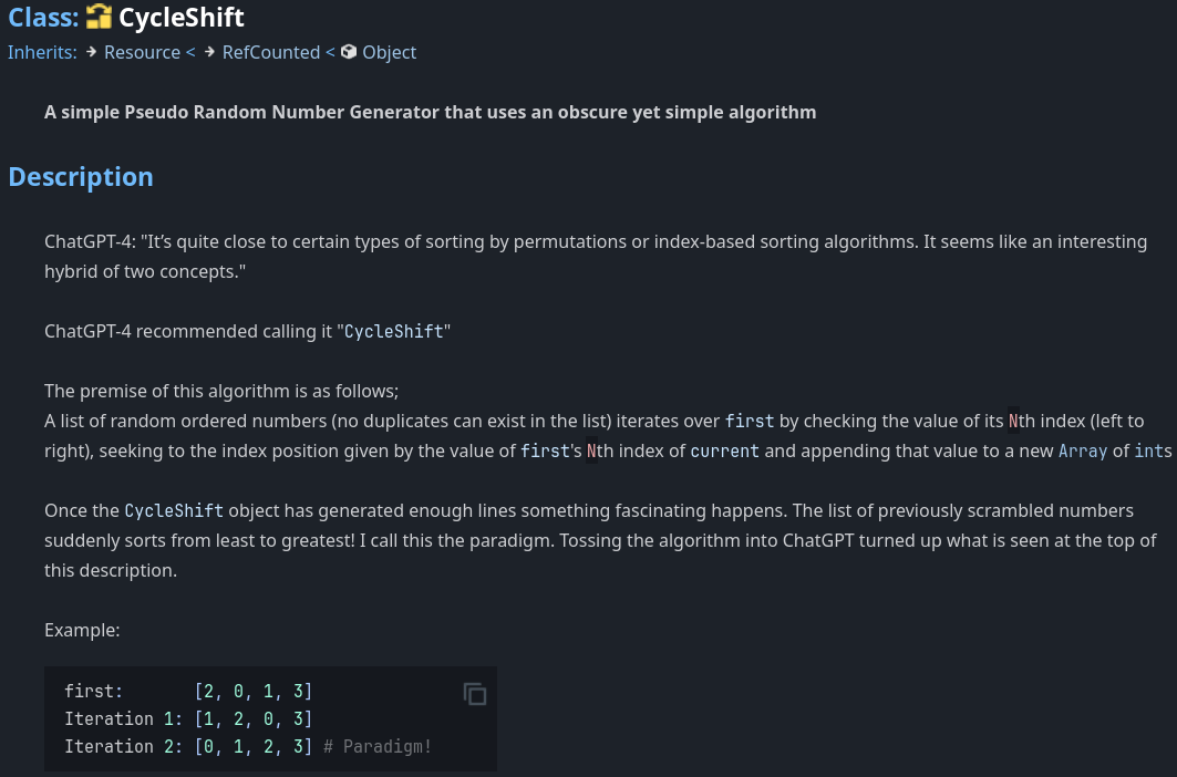 Godot's scripting language. My most well-known language as it is super similar to Python and the documentation for everything in GDScript comes with Godot itself. I've even made my own libraries for Godot that have their own documentation since Godot also automatically documents your code with your comments!